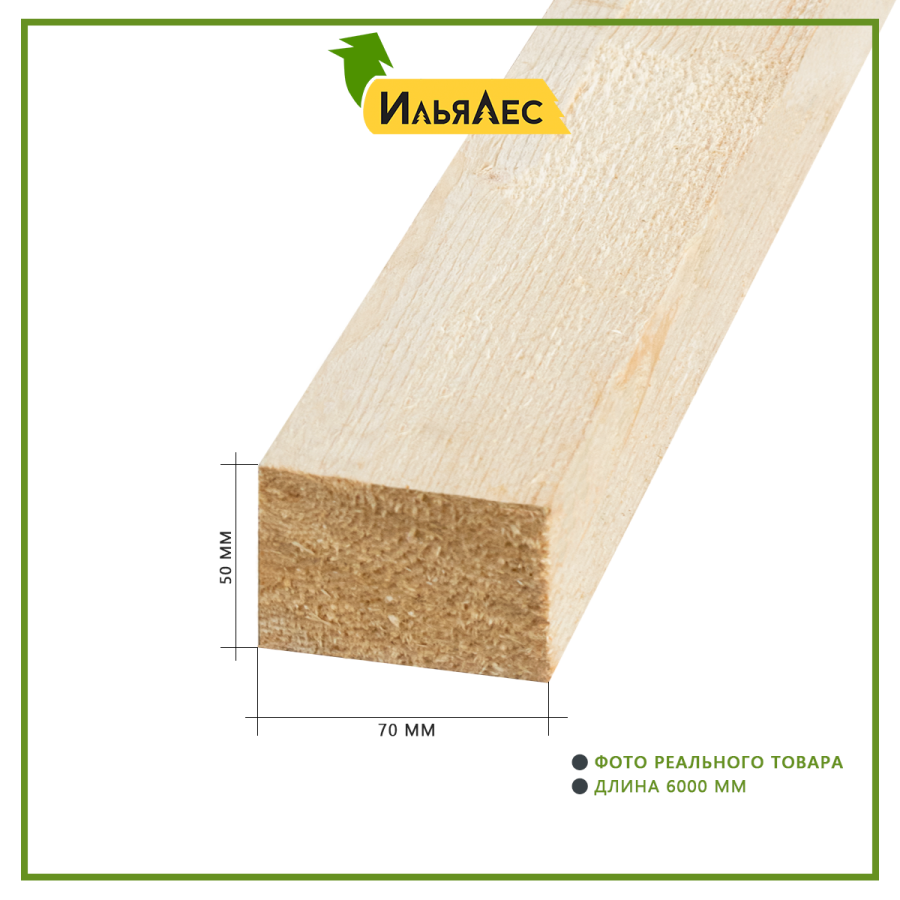 Обрезной брусок 50х70х3000 мм от ТМ "Илья Лес" – надежный пиломатериал для строительства и ремонта. Изготовлен из натуральной сосны/ели с естественной влажностью (22-32%), что обеспечивает прочность и удобство в обработке.